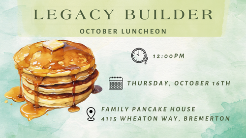 Our senior fellowship group will be gathering for lunch on Oct 16th at Family Pancake House in Bremerton. Need a ride? Contact Pastor Eddie or Judi Brown!